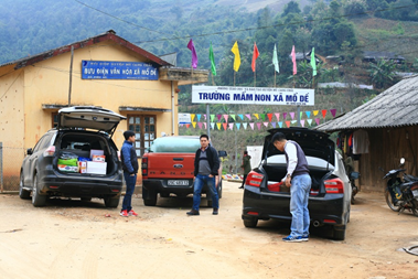 Đoàn xe của EMS đến được điểm trường mầm non xã Mồ Dề