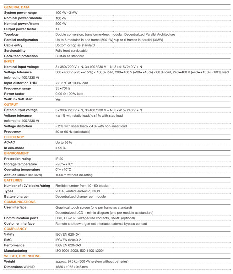 Được tạo ra cho các trung tâm dữ liệu vừa và lớn, UPS Conceptpower DPA 500 của ABB đáp ứng yêu cầu về công suất từ 100 kW đến 3 MW và cung cấp khả năng sẵn sàng tối đa cho những ai nhắm tới thời gian downtime bằng không cũng như chi phí sở hữu thấp.