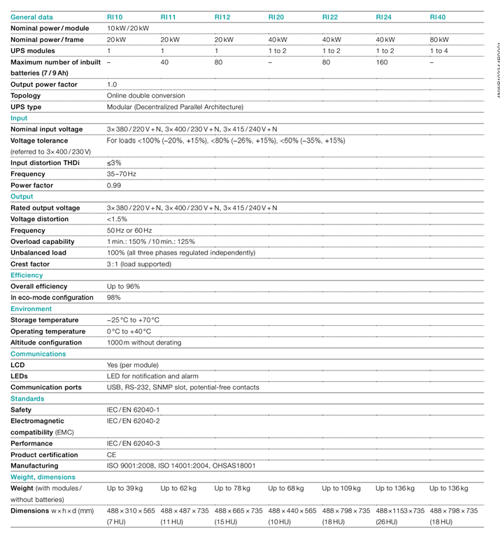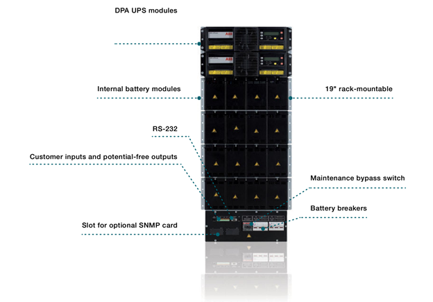 DPA Upscale RI là một trong những hệ thống UPS nhỏ gọn nhất trên thị trường, phù hợp với cá giải pháp thiết kế linh hoạt. Thiết kế dạng mô đun và có thể lắp rack, sản phẩm cung cấp một hệ thống lí tưởng cả trên phương diện kỹ thuật và thương mại khi bạn cần đến một giải pháp linh hoạt. DPA Upscale RI bao gồm UPS, Ắc quy và giao tiếp; tất cả đều được tích hợp trên bất kỳ rack 19” (của bất kỳ nahf sản xuất nào) và cung cấp lên đến 80 kW (60 kW N+1) khiến sản phẩm trở nên lý tưởng cho công nghệ thông tin tích hợp, viễn thông hay các quy trình kiểm soát quan trọng khác.