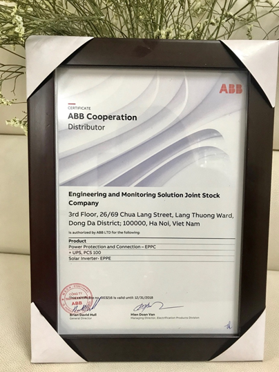 Ngày 2/3/2018 vừa rồi, trong không khí trang trọng của buổi họp Channel Partner Meeting – Electrification Products Division của ABB diễn ra tại khách sạn JW Marriott Hanoi, Tổng Giám Đốc công ty Cổ phần Công nghệ và Giải pháp EMS, ông Hoàng Văn Trường vinh dự đón nhận Giấy chứng nhận Nhà phân phối và Đối tác chính thức của ABB tại thị trường Việt Nam. Đại diện trao giấy chứng nhận từ phía ABB gồm có ông Brian Hull, TGĐ ABB tại Việt Nam; ông Đoàn Văn Hiển, Giám Đốc ban Điện khí hóa và ông Đỗ Quyền, Giám đốc Kinh Doanh Khu vực miền Bắc. ABB đã tin tưởng lựa chọn EMS làm đối tác chiến lược cho các sản phẩm trong mảng Power Protection & Connection, các sản phẩm UPS, PCS 100, và Solar Inverter.