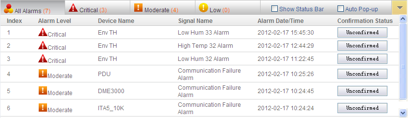 | Tính năng | Thiết kế theo kiểu Rack mount, sử dụng để giám sát các thông số môi trường trong một Rack hoặc trong một trung tâm dữ liệu. Có khả năng cảnh báo theo điều kiện thông qua các phương thức như Email, SMS và SNMP. Có khả năng lưu trữ dữ liệu và tạo đồ thị cho các thông số được lựa chọn. |