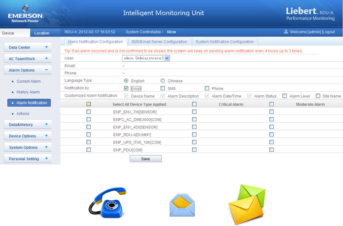 Hệ thống RDU-A G2 sẽ được cung cấp, lắp đặt để theo dõi kiểm soát các thông số về môi trường trong TTDL.