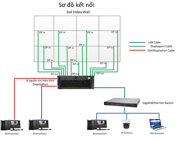 Hệ thống màn hình hiển thị kích thước lớn chuyên dụng gồm tập hợp nhiều màn hình độc lập được ghép với nhau theo một ma trận định trước để tạo thành một màn hình kích thước không hạn chế có khả năng hiển thị nhiều nguồn tín hiệu hình ảnh.