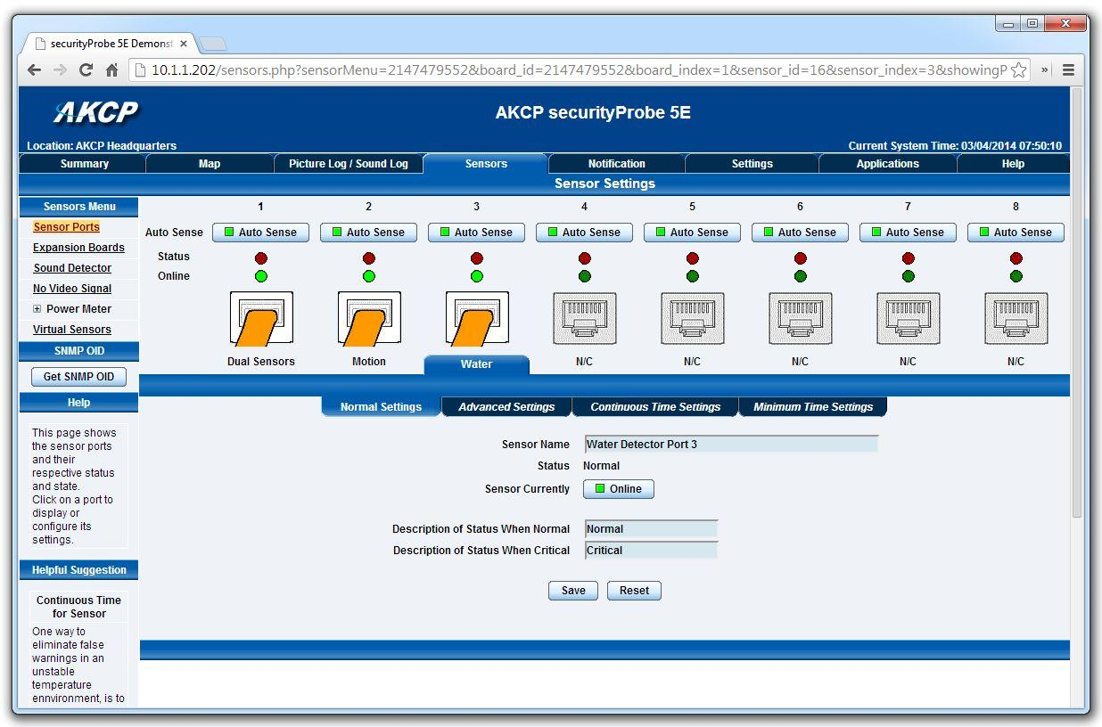 AKCP sản xuất một dải các cảm biến phát hiện rò rỉ nước để sử dụng trong phòng máy tính, phòng máy chủ và các trung tâm dữ liệu quy mô lớn. Các cảm biến AKCP có thể được đặt trên một số bề mặt và gắn trên các ống điều hòa không khí sàn nâng. Đối với các máy điều hòa không khí rack độc lập, cảm biến phát hiện dây là một tài sản vô giá để bảo vệ chống lại sự rò rỉ nước cục bộ.