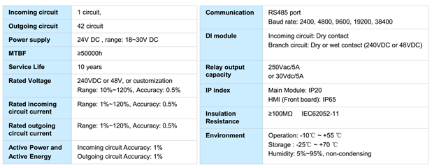 Mạch chính: Cảnh báo điện áp, dòng, tải, trạng thái đóng cắt. Cảnh báo tùy chọn cho điện trở cách điện và nhiệt độ.