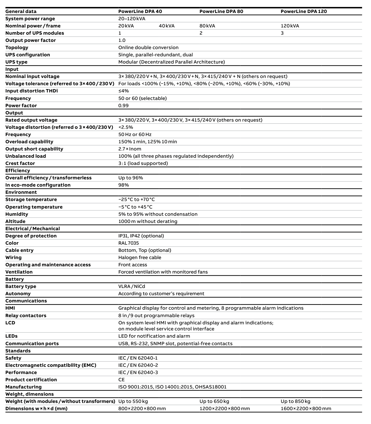 PowerLine DPA là UPS chuyển đối kép trực tuyến ứng dụng những ưu điểm về kiến trúc UPS mô đun độc đáo của ABB, sẵn sàng cho các môi trường khắc nghiệt đối với các thiết bị điện tử. PowerLine DPA dựa trên kiến trúc song song phân tán của ABB đảm bảo thiết UPS tốt nhất xét về độ sẵn sàng, khả năng bảo trì, tính an toàn và dễ dàng để sử dụng. Thiết kế mạnh mẽ của sản phẩm phù hopwj với môi trường nhà máy công nghiệp nơi có nhiệt độ cao, bụi, độ ẩm và các chất gây ô nhiễm có tính ăn mòn. DPA được thiết kế để có tuổi thọ thiết kế là 15 năm. Các tùy chọn cấu hình sẵn có của nó đuọc thiết kế riêng cho môi trường công nghiệp cho phép triển khai nhanh chóng với thời gian thực hiện ngắn.