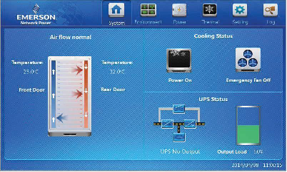 | 4. Màn hình điểu khiển cảm ứng LCD Bảng hiển thị thân thiện với người dùng giúp dễ dàng tiếp cận thông tin về nguồn điện, quản lý nhiệt, môi trường và an ninh |  | 5. Quản lý luồng khí Các ống khí nóng và lạnh riêng biệt để ngăn khí thải nóng không lưu thông lên mặt trước tủ |  | 6. Bộ cảm biến nhiệt độ / Cảm biến cửa Bộ cảm biến nhiệt độ ở phía trước (lối lạnh) và phía sau (lối nóng) cung cấp các thông tin chính về môi trường và cảnh báo người sử dụng nếu vượt quá ngưỡng cấu hình. Bộ cảm biến cửa vào ở mặt trước và sau cảnh báo nếu có truy cập trái phép |